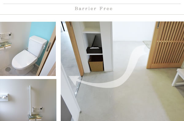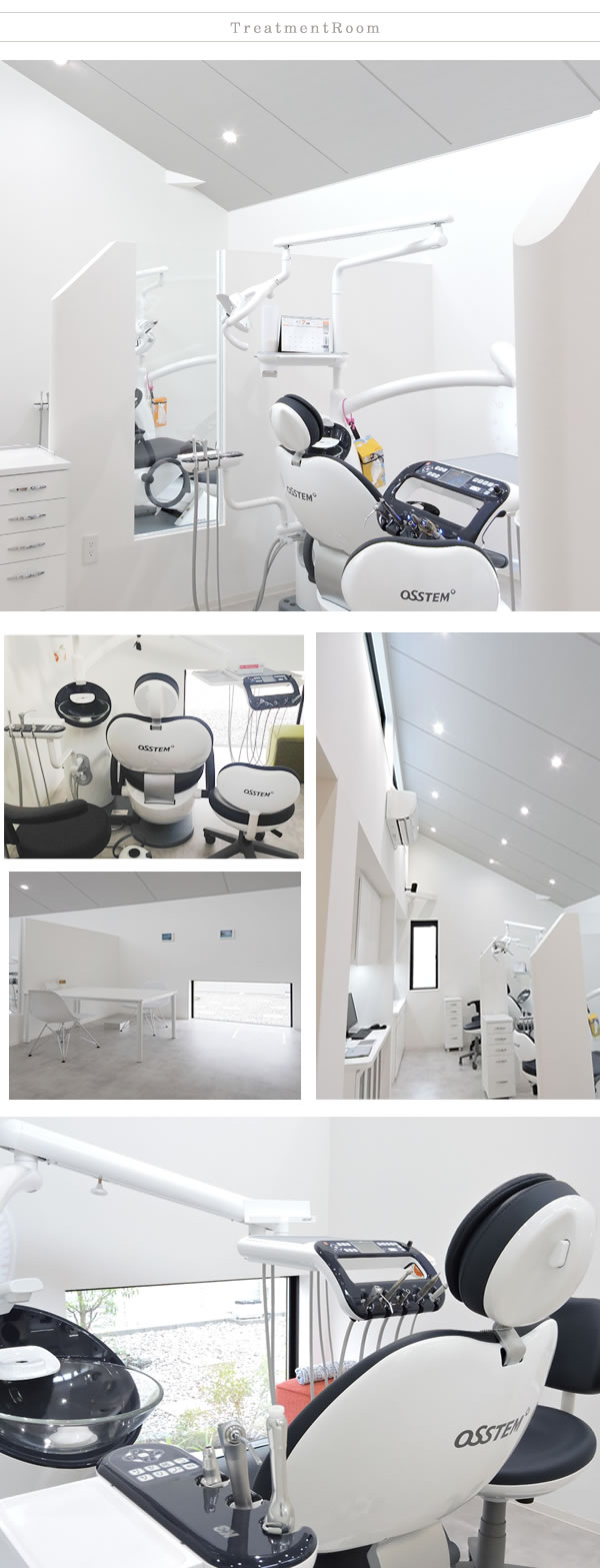 院内は平屋1階でバリアフリーになっております。 車いす、ベビーカーも駐車場からそのままスロープで院内へ、 更に、スリッパに履き替えず土足のまま治療ルームまでお入りいただけます。