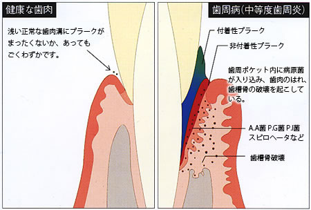それだけでは分かりませんが、歯が移動している、歯が長くなってきたという場合は残念ながら歯周病の可能性があります。歯周病は症状が分かりづらくいつの間にか骨を溶かすサイレントキラーと言われる恐ろしい病気です。 |